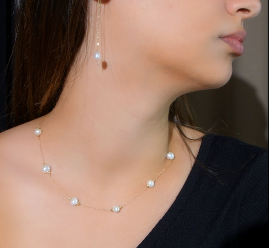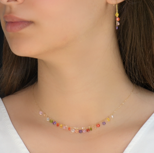 Ensemble Nyris en Or 18k Avec des Petites Pierres de Johar Naturelles ( Collier et boucles D'oreilles )